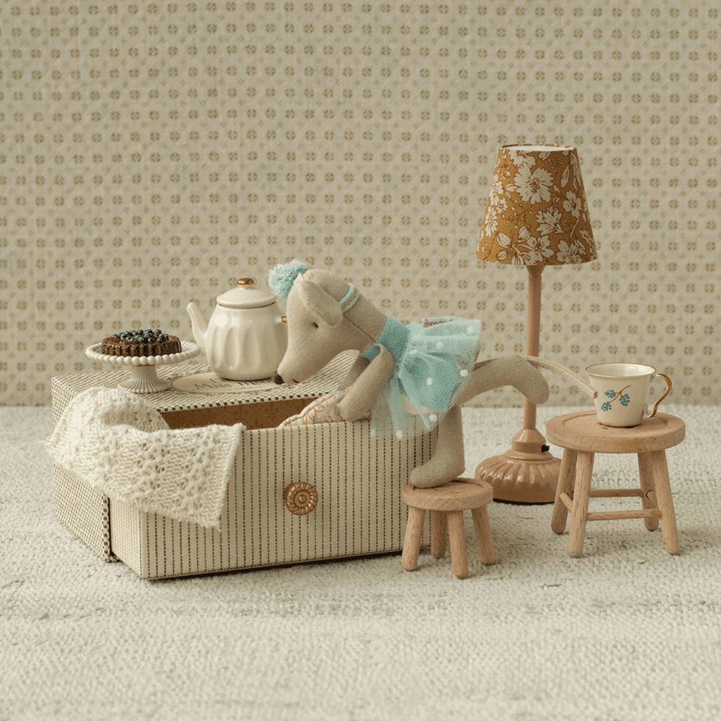 Maileg Little Sister Dance Mouse In Daybed – Mint